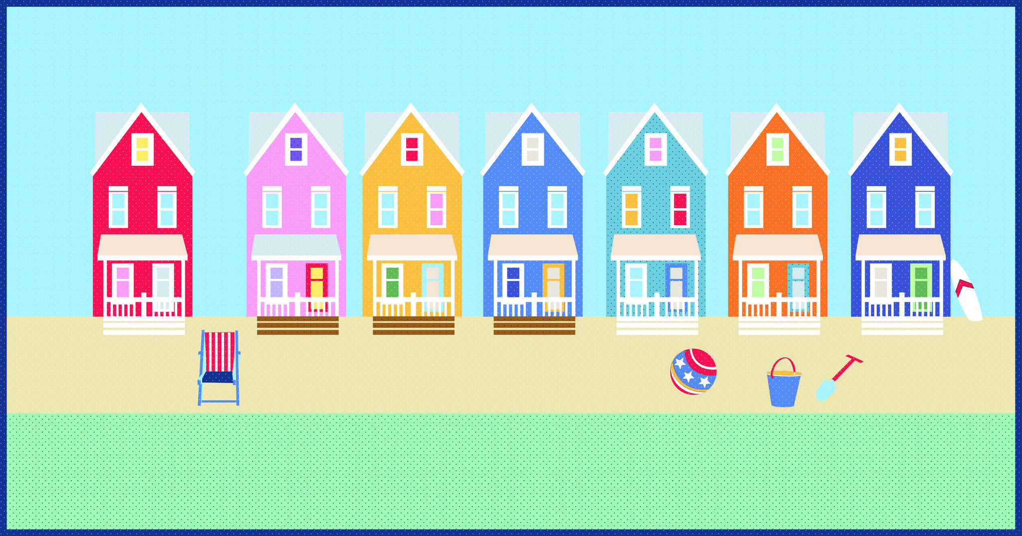 Multi Color Beach Houses Appliqué using American Jane Pindots