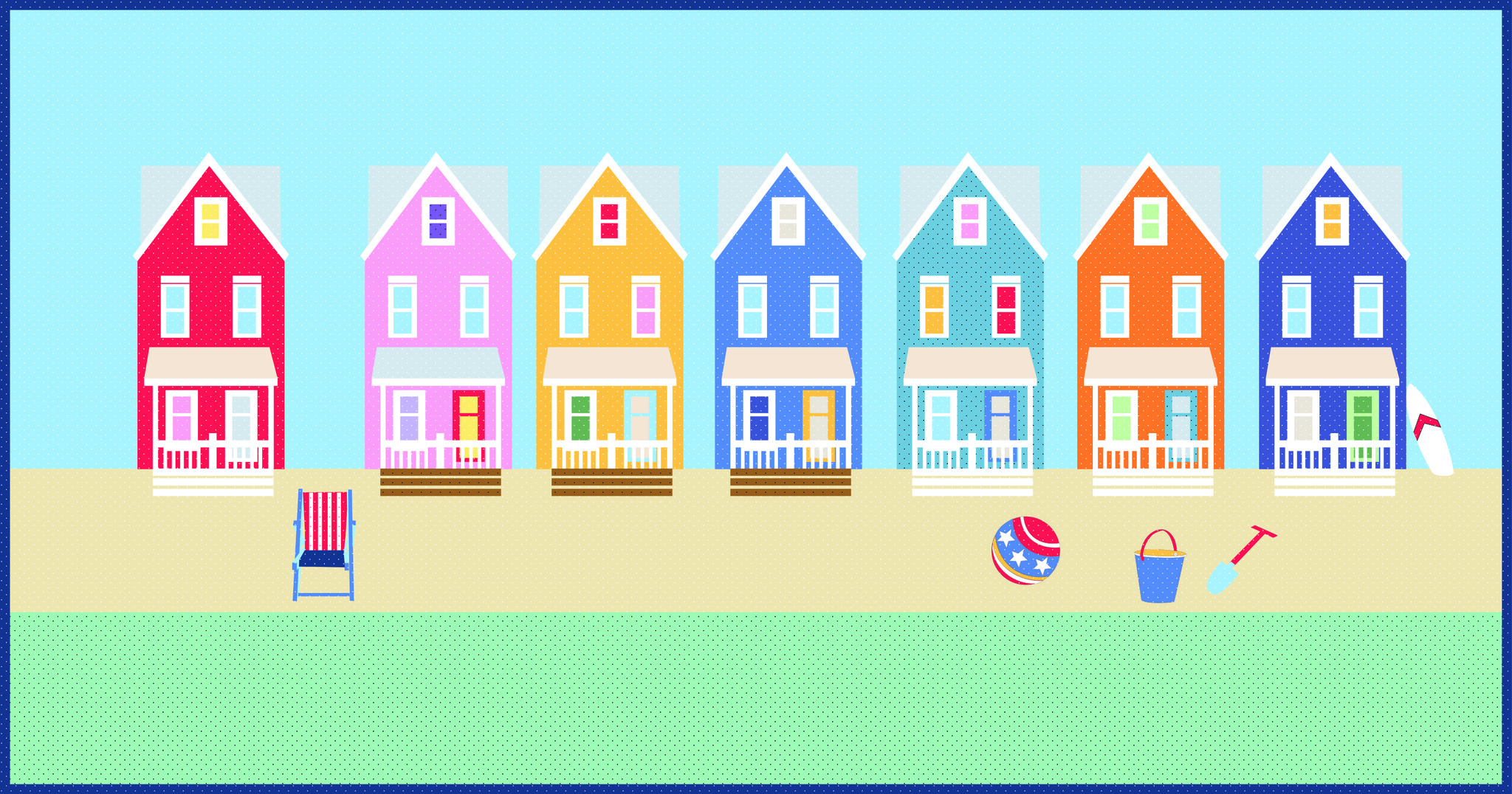 Multi Color Beach Houses Appliqué using American Jane Pindots