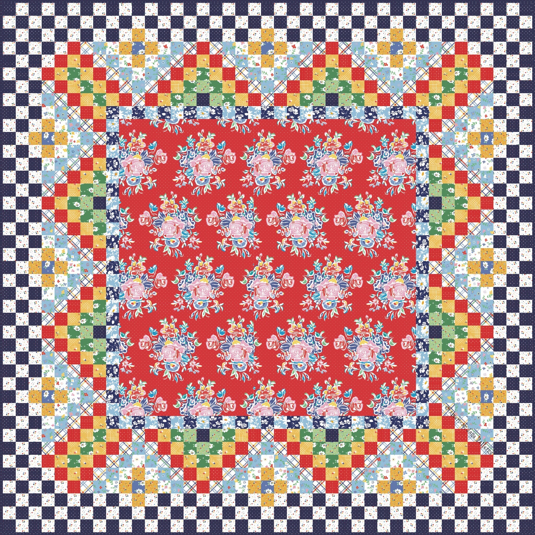 A big section of fabric to feature in center with strip set checkerboard print border.